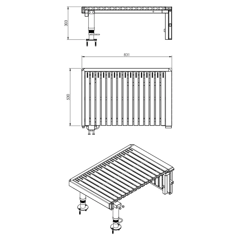 A AstralPool criou uma plataforma para a fixação dos pódios de saída. O produto é composto por uma base AISI-304 e grelhas de plástico.